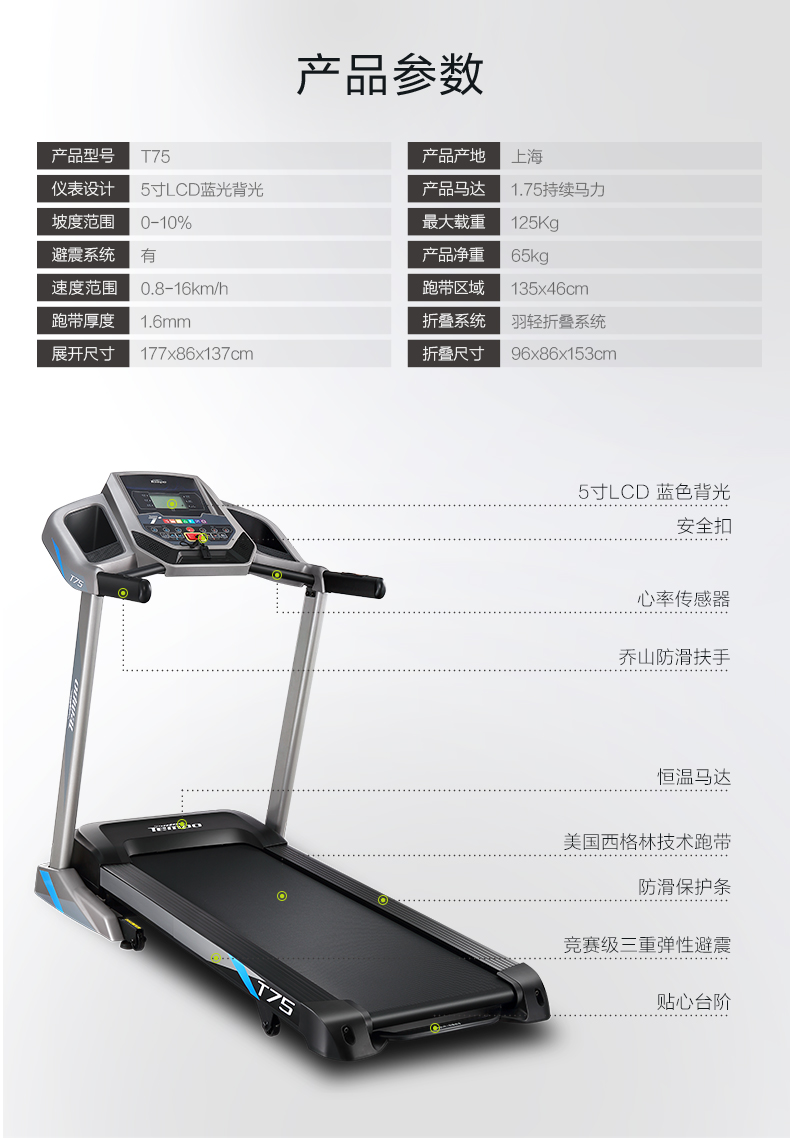喬山跑步機家用款新品T75電動靜音可折疊健身器材 運動器材 家用暢跑款