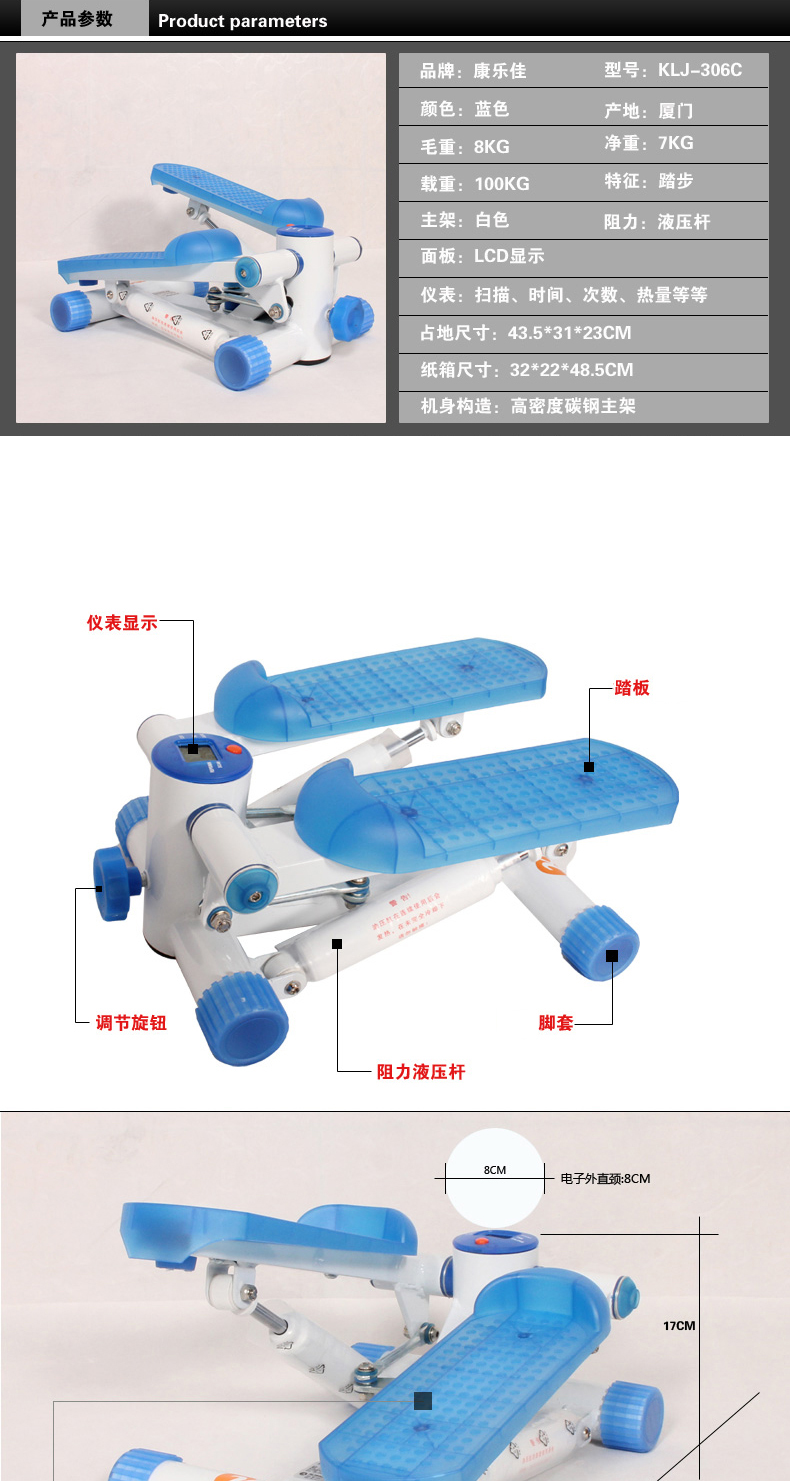 康樂(lè)佳K306CF踏步機(jī)家用靜音健身運(yùn)動(dòng)器材K306C腿部運(yùn)動(dòng)器材家用