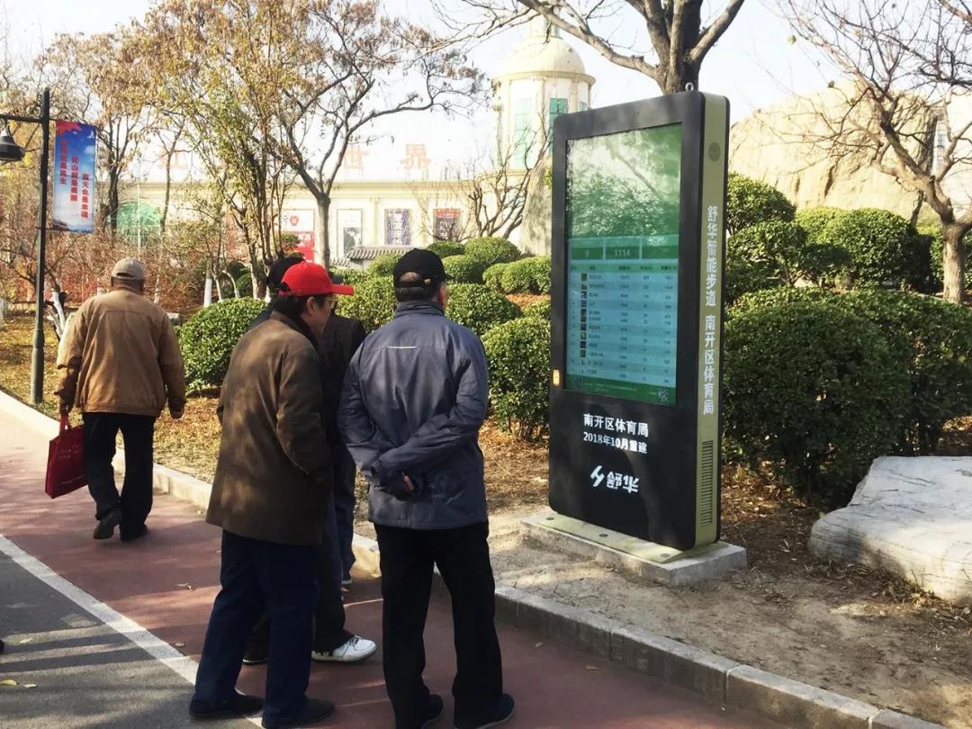 據(jù)進(jìn)一步了解,2018年,天津南開區(qū)健康主題公園內(nèi)設(shè)立了舒華智能健身步道,全長為1公里,主要由人流量探測(cè)系統(tǒng)、步道定位工作站、健康互動(dòng)大屏、健康心率柱、室外環(huán)境監(jiān)測(cè)器以及來一場“智能步道”系統(tǒng)等組成。途中每隔一段距離都會(huì)配有一個(gè)舒華健康心率柱,人們?cè)谶\(yùn)動(dòng)間歇握住柱子上的心率觸摸鍵時(shí),即可檢查自己的運(yùn)動(dòng)強(qiáng)度與狀態(tài),了解自身健康情況,十分方便、人性化。