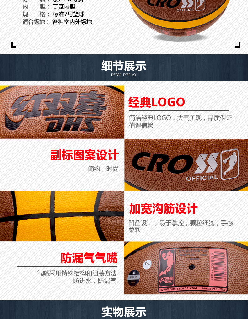 紅雙喜FB034籃球 防滑高彈訓(xùn)練比賽室內(nèi)室外籃球 配球袋氣針