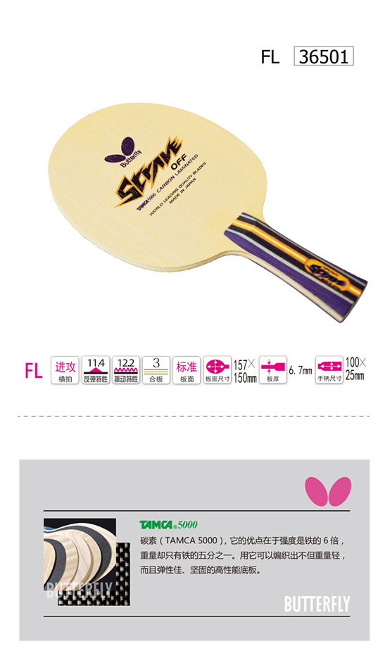 Butterfly蝴蝶36501 碳素底板(TAMCA5000-STRAVE-FL)新款攻擊型底板
