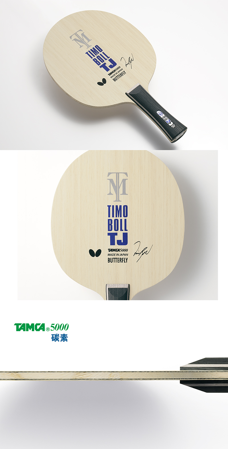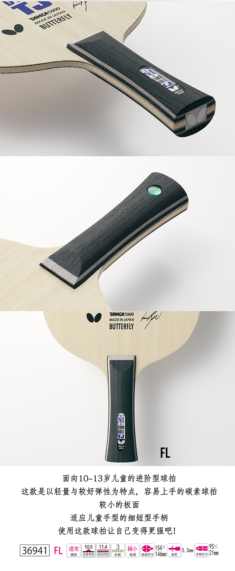 Butterfly蝴蝶36931 TIMO BOLL J-FL乒乓球純木底板 橫拍 重量輕,板面小 適合兒童的細型手柄