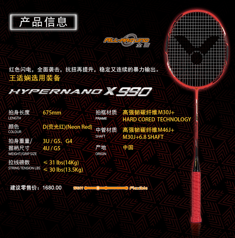 VICTOR威克多羽毛球拍單拍碳纖維專(zhuān)業(yè)比賽王適嫻指定球拍HX-990