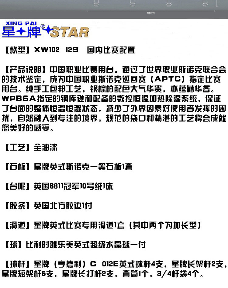 星牌 臺球桌 XW101-12S英式斯諾克世錦賽用臺