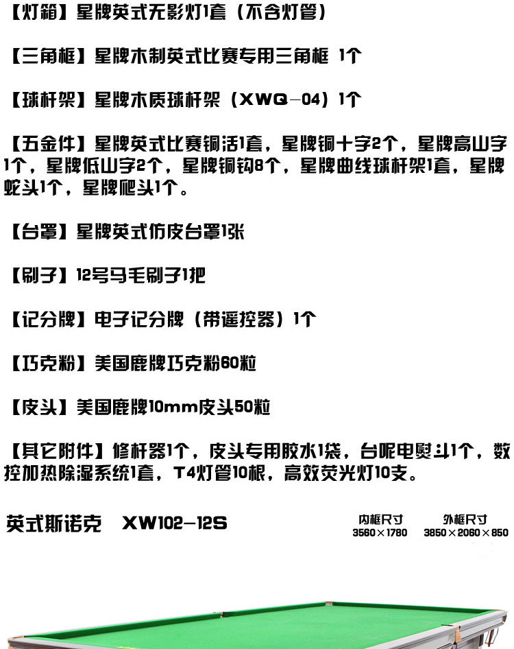 星牌 臺球桌 XW103-12S英式標(biāo)準(zhǔn)斯諾克球臺